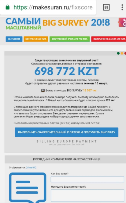 Злоумышленники посредством мобильных мессенджеров и электронной почты осуществляли рассылку с приглашением пройти опрос на интернет-ресурсе makesuran.ru за денежное вознаграждение с последующими выплатами средств участнику опроса.