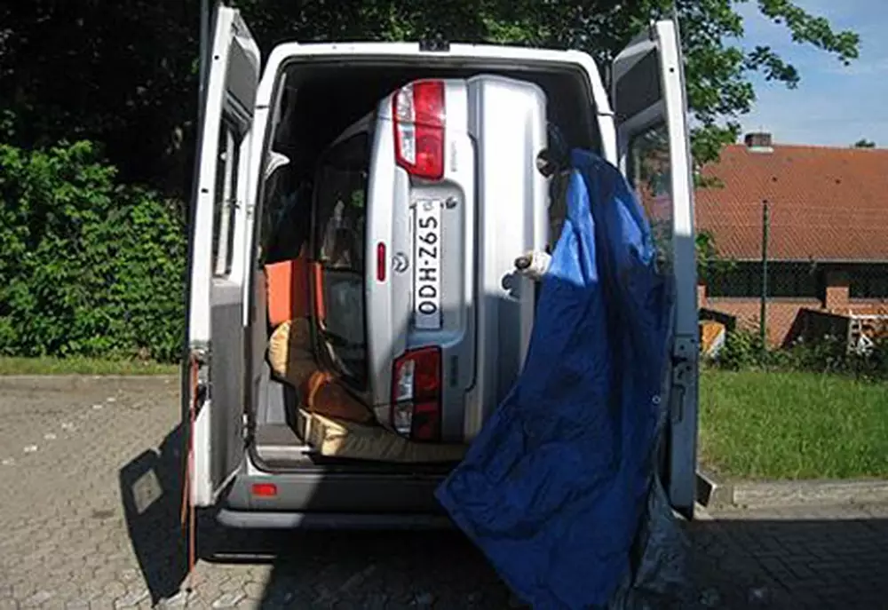 38-летний Константин Крол (Konstanty Krol) и 28-летний Цезарь Шмелевский (Cezar Chmielewski) таким образом хотели сэкономить. Казахстанцы для того, чтобы машина не гремела, обложили ее матрасами и одеялами. Однако капот легкового автомобиля фактически упирался в лобовое стекло мини-вэна, а задние двери микроавтобуса не закрывались из-за торчащего багажника. В итоге немецкие полицейские конфисковали микроавтобус и находившуюся в нем "Мазду".