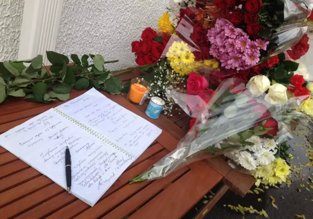 Между тем, в Астане охранники не пускают жителей столицы в здание посольства, ссылаясь на то, что это частная территория. Астанчане оставляют цветы и фотографии перед входом в посольство возле ограждения. Позже сотрудники заносят цветы в здание, где расположено посольство Франции в Казахстане.