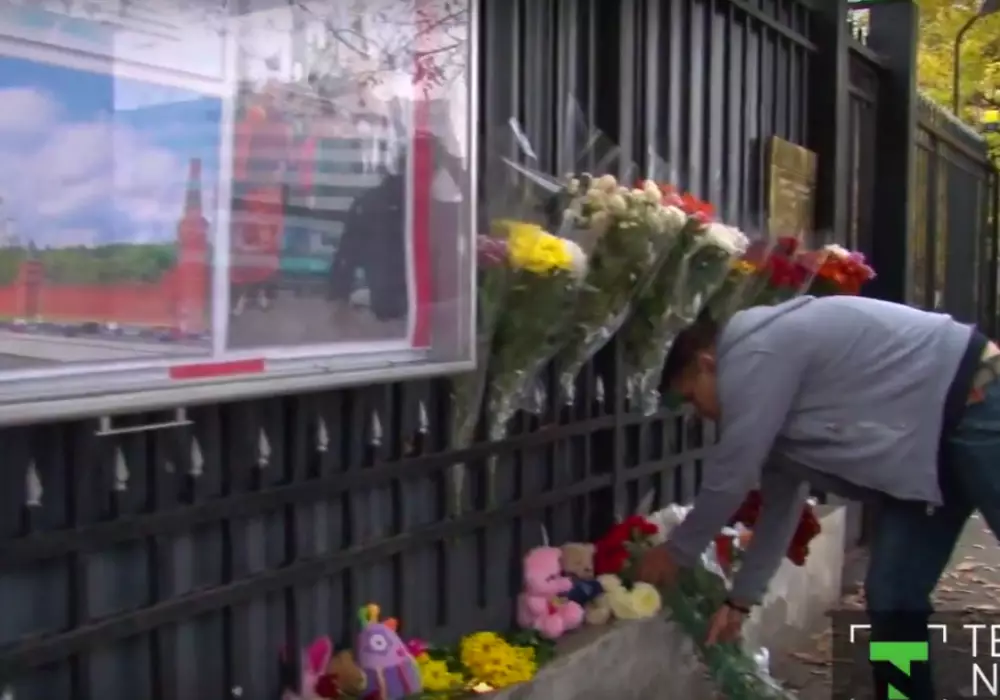 "Я вот взял сына, пришел поклониться, отдать дань уважения. Конечно, этим не возместишь утрату родителям, родственникам, друзьям. Это возместить очень трудно. Я хочу, чтобы сын мой знал, что мы должны жить в единстве и дружбе. Любое горе других должно быть нашим горем", - говорит один из пришедших к консульству.