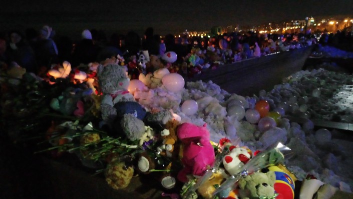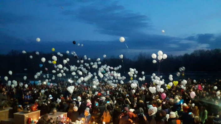К ним, к звездам, сегодня усть- каменогорцы запустили сотни белых воздушных шаров. А возле здания консульства РФ оставили меховые игрушки и зажгли свечи.
