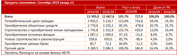 Также растет ипотечное кредитование: плюс 429,9 миллиарда тенге. Сейчас оно составляет 1,7 триллиона. Сектор строительства и приобретения жилья занимает уже 13 процентов от портфеля, против 10,4 процента, которые были год назад.