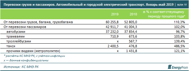 "За пять месяцев 2019 года автомобильным и городским электрическим транспортом было перевезено 9,4 миллиарда пассажиров - это на 2,6 процента больше, чем в аналогичном периоде годом ранее. Традиционно автобусы - самый популярный у казахстанцев транспорт: 7,1 миллиарда пассажиров, что, впрочем, на 2,2 процента меньше, чем годом ранее. На втором месте по популярности по-прежнему такси. Примечательно, что тут динамика обратная: сразу плюс 21,8 процента за год. Пассажиропоток здесь увеличился до 2,2 миллиарда пассажиров по итогам пяти месяцев текущего года. Перевозки пассажиров трамваями также выросли на 12,2 процента за год и составили 12,5 миллиона человек", - пишет портал Energyprom.kz.