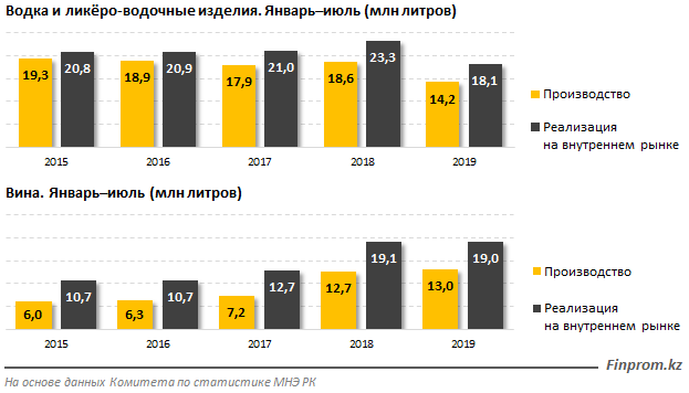 В то же время казахстанцы остаются поклонниками вин: потребление в секторе осталось на уровне 19 миллионов литров за полугодие, а производство выросло с 12,7 до 13 миллионов литров.