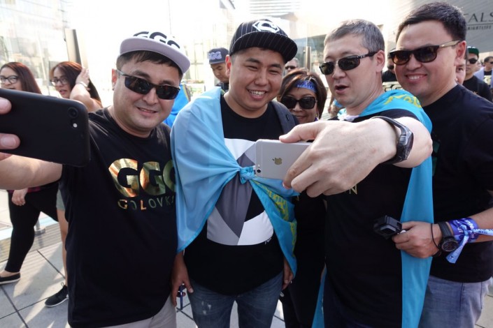 "Сегодня все казахстанцы - не только с Казахстана, но и со всех точек земли - решили собраться. В Лас-Вегас приехали тысячи людей, которые болеют за Головкина. Замечательная погода, замечательное настроение. И сегодня мы будем болеть за одного фаворита - это Геннадий Головкин, который положит "Канело" на ринг и покажет настоящий казахстанский бокс!" - рассказал блогер Кайрат Кудайберген, который выступил одним из организаторов шествия.
