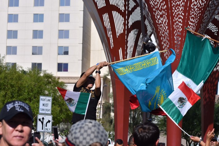 Казахстанцы устроили шествие в Лас-Вегасе в поддержку Головкина Фото Турар Казангапов©
