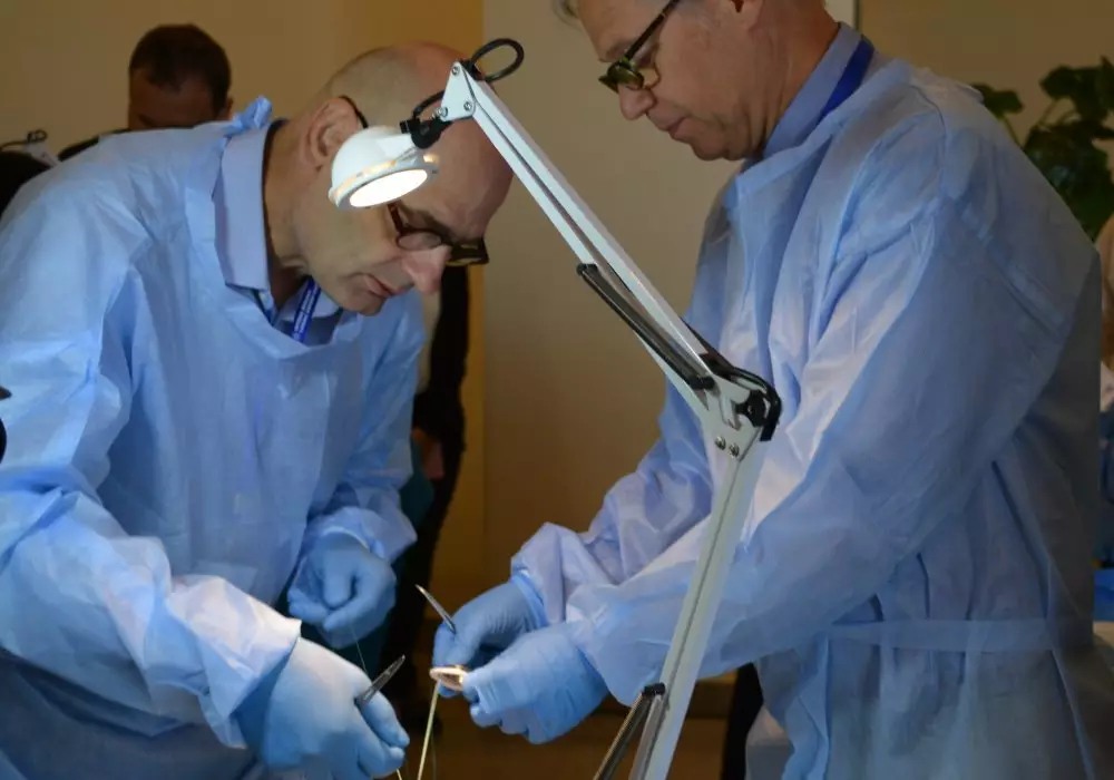 Также в рамках мастер-класса была организована симуляционная лаборатория, где его участники практиковали имплантацию вспомогательного устройства левого желудочка HeartMate III на свином сердце.