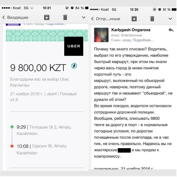 Позже читатель Tengrinews.kz рассказал о своей поездке через Uber, которая обошлась ему в 20 тысяч тенге. Мужчина заказал поездку из Талгара в Алматы.