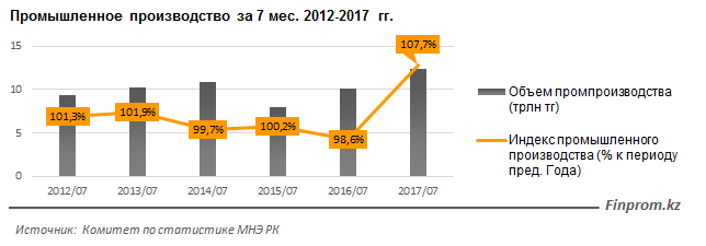 Стоимость выпущенной продукции в этом году оценивается в 12,3 триллиона тенге (+22,2 процента за год).