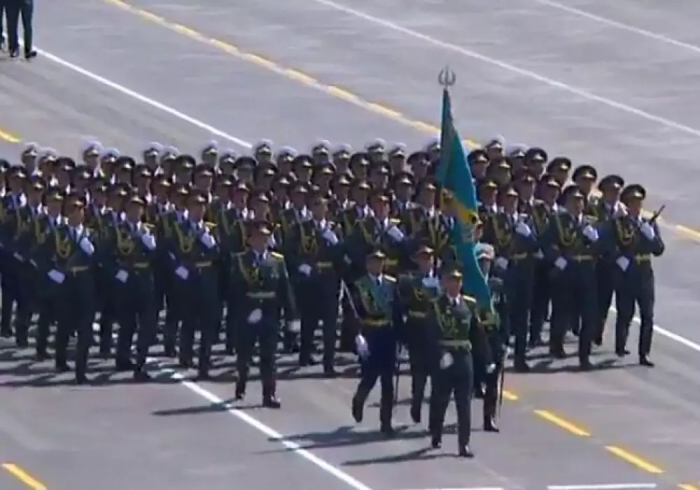 От Казахстана в параде приняла участие рота почетного караула Аэромобильных войск Вооруженных сил РК. По главной площади Китая прошли 32 "коробки" военнослужащих, из них 15 - отряды страны-хозяйки. Казахстанцы прошли седьмыми по счету среди иностранных войск под звуки китайского марша.