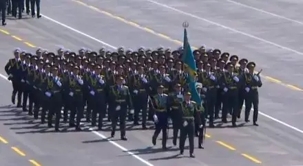 От Казахстана в параде приняла участие рота почетного караула Аэромобильных войск Вооруженных сил РК. По главной площади Китая прошли 32 "коробки" военнослужащих, из них 15 - отряды страны-хозяйки. Казахстанцы прошли седьмыми по счету среди иностранных войск под звуки китайского марша.