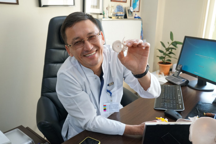 "Мы подобрали четырех больных с опухолями грудного отдела позвоночника. Опухоли были разных видов, типов. Мы удалили полностью позвонки. Для каждого мы отпечатали индивидуальный имплантат, который соответствует по структуре и по внешней форме позвонку", - рассказал заведующий отделением спинальной нейрохирургии и патологии периферической нервной системы Национального центра нейрохирургии Талгат Керимбаев.