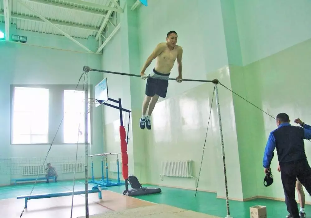 "Военнослужащий кадетского корпуса Ержан Кусаинов при сдаче государственных экзаменов по выполнению упражнений выход силой на две руки (упражнение № 6 - подъем силой на перекладине) показал результат, который превосходит рекорд Вооруженных сил Казахстана", - отмечает пресс-служба оборонного ведомства.