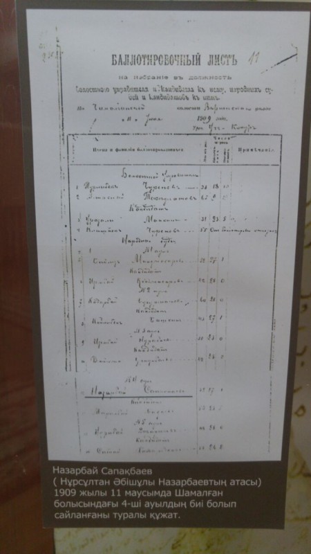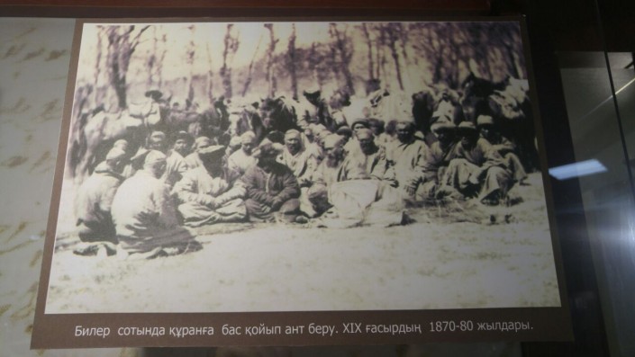 Среди экспонатов можно увидеть копию документа об избрании судьей Назарбай бия. Дед Президента Казахстана Нурсултана Назарбаева по отцовской линии был бием и отправлял правосудие по законам казахского права.