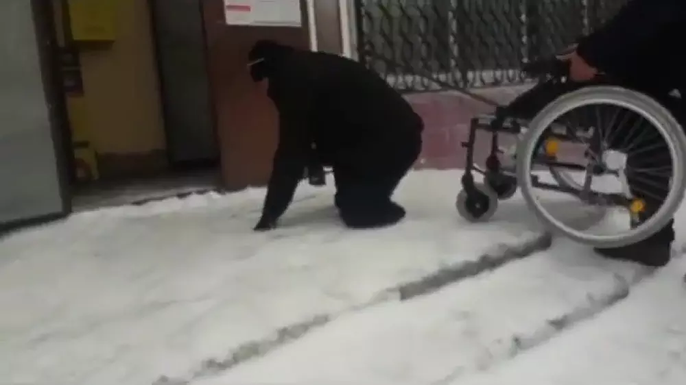 Сегодня казахстанцев потрясло видео, снятое возле одного из отделений "Казпочты" в Караганде. На видео житель города, инвалид-колясочник, пытался ползком взобраться по скользким ступенькам, чтобы забрать свою посылку. При этом на кадрах видно, что у отделения отсутствует пандус и неудобства при его посещении испытывают не только люди с ограниченными возможностями, но и пенсионеры, которые также были запечатлены на видео.