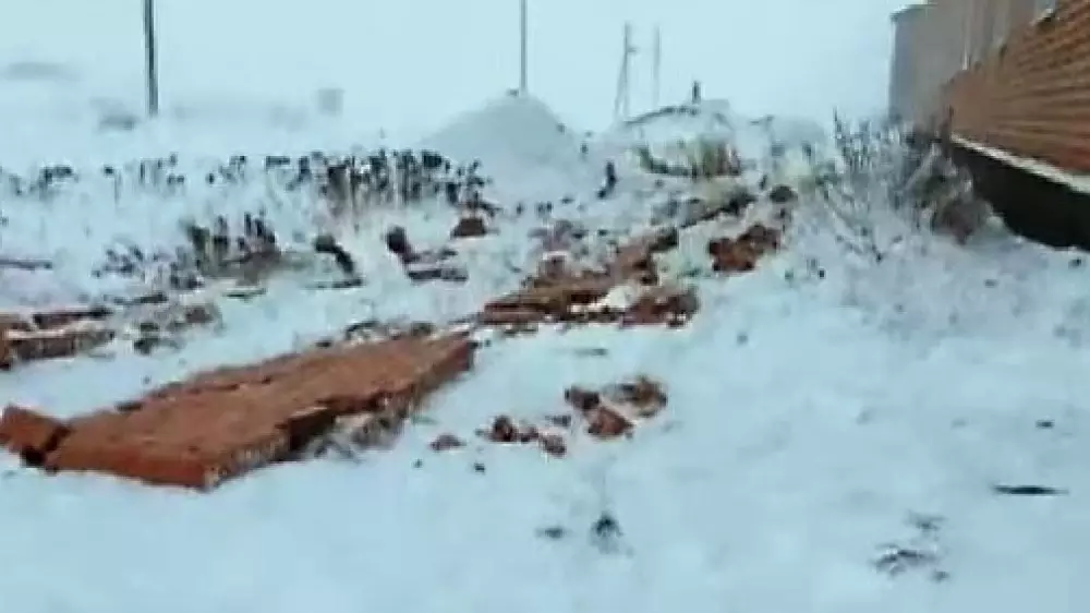 Весной прошлого года местные строители прославились возведением в Улытау дома без цемента. На этот раз, не выдержав сильного бурана, отвалилась свежая кирпичная облицовка с дома, построенного по программе "Нұрлы жер".