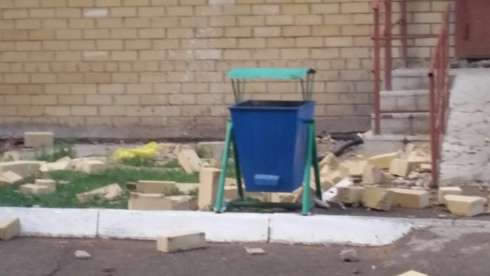 "По счастливой случайности нет пострадавших. Кирпичи упали прямо на входную группу подъезда. На место происшествия выехали представители департамента по ЧС, жилищной инспекции и акимата. (...) Это было во время дождя. Соответственно, на улице не было людей, поэтому обошлось все. Там кирпичи прямо у подъезда валялись, они могли на голову кому-то упасть", - сообщил очевидец.