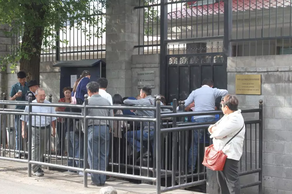 Генеральное консульство Китая в Алматы увеличило часы работы по приему граждан, передает корреспондент Tengrinews.kz. По словам генерального консула Ду Дэвэнь, новый график работы начал действовать с начала этой недели, с 16 сентября. Раньше ведомство принимало документы и выдавало визы по понедельникам, средам и пятницам с 9.00 до 11.45. Теперь в утренние часы дипломаты будут только принимать документы, а выдача готовых виз будет осуществляться с 16.00 до 17.00. Кроме того, по словам генкосула, в ведомстве увеличили штат дипломатов и открыли еще одно приемное окно. Ранее местные жители пожаловались на то, что в приемные дни у ворот консульства начинается бардак - люди начинают справлять нужду под заборами, не могут проехать машины, постоянно слышатся крики и визги, когда полиция пытается навести порядок в очереди. Записавшиеся на прием граждане рассказывают, что ждут встречи с консулом уже около месяца. Посетители говорят, что очереди для входа в консульство можно купить через посредников за пять-семь тысяч тенге. Ду Дэвэнь подтвердила, что у ворот консульства происходят неприятные инциденты. Она отметила, что, прежде всего, за непорядок на улице должны быть ответственны сами посетители. Дэвэнь добавила, что количество полицейских возле консульства будет увеличено. По словам генконсула, меры по уменьшению очередей будут продолжаться. Дэвэнь не исключила, что записаться на прием можно будет через сайт ведомства. По поводу посредников, которые берут плату за вход в консульство, она заявила, что этим вопросом должны заниматься правоохранительные органы. Как отметила Дэвэнь, летние месяцы для консульства являются самыми активными, для получения виз в день приходят порядка 500 человек. Это связано с тем, что в это время визы оформляют абитуриенты, желающие получить высшее образование в Китае.