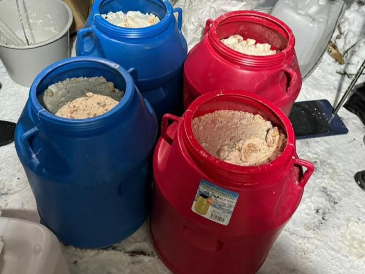 В ходе обыска изъято свыше 200 килограммов готовой продукции – наркотика "мефедрон" - и 100 литров сырья.
