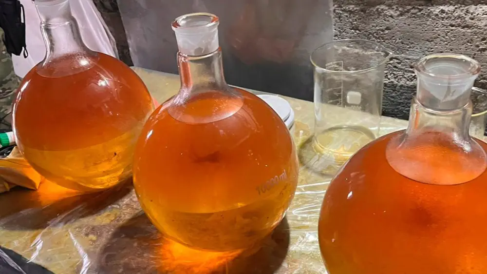 В ходе обысков изъято около 20 килограммов синтетических наркотиков, тысяча литров прекурсоров и оборудование, предназначенные для изготовления "синтетики".