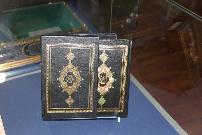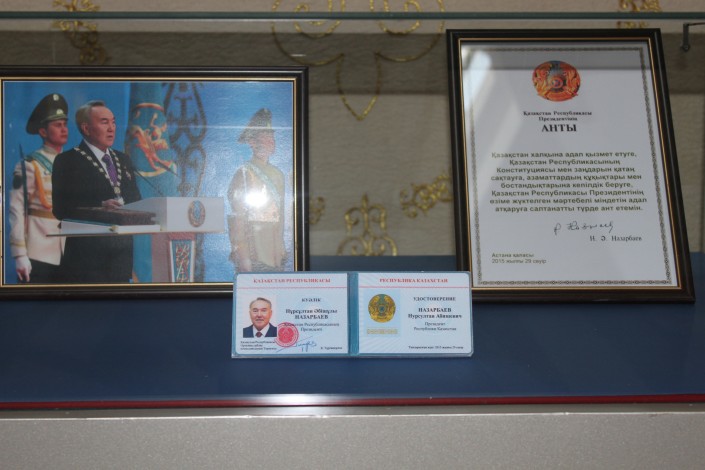 Рассказывая уже о президентстве Назарбаева, экскурсовод не могла обойти стороной большое количество подарков. В коллекции имеется немало священных книг - Коранов, в основном это рукописные сборники - подарки от глав мусульманских государств. Также у Назарбаева есть Коран, подаренный казахстанским космонавтом Талгатом Мусабаевым. Эта книга побывала в космосе.