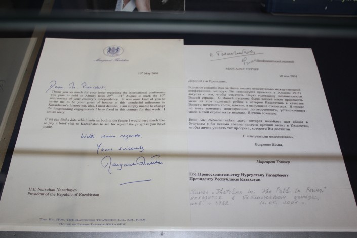 "В годы политического сближения СССР и КНР и укрепления советско-китайской дружбы Назарбаев переписывался с молодым учителем из Китая Чжоу Бай Сяо. Вначале письмо от гражданина КНР поступило в ЦК ВЛКСМ, после чего оно было перенаправлено секретарю Каскеленского райкома. Но к нему оно попало намного позже. Тогда был найден товарищ китайского учителя по переписке - десятиклассник Нурсултан Назарбаев. Оба письма были опубликованы на страницах газеты", - рассказала экскурсовод.