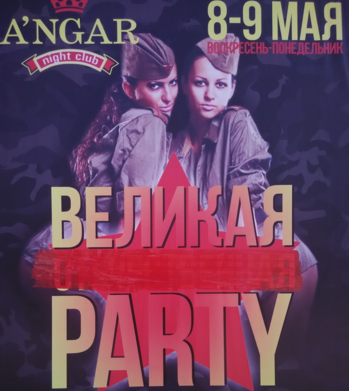 Кокшетаусцам не понравились параллели между историческим событием и вечеринкой. Арт-директор ночного клуба Диас Нурмагамбетов рассказал, что распорядился закрасить слово "Отечественная", чтобы не смущать горожан.