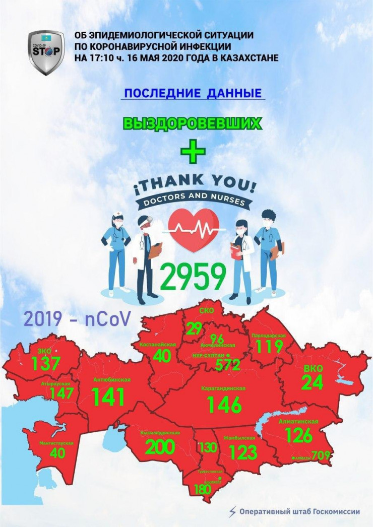 Так, по состоянию 17.10 часов 16 апреля в Казахстане еще 105 человек выздоровели от коронавирусной инфекции.