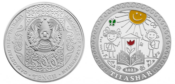- из серебра 925/1000 пробы качеством proof, массой 24 грамма, диаметром 37 миллиметров, номиналом 500 тенге, тиражом 5 000 штук;