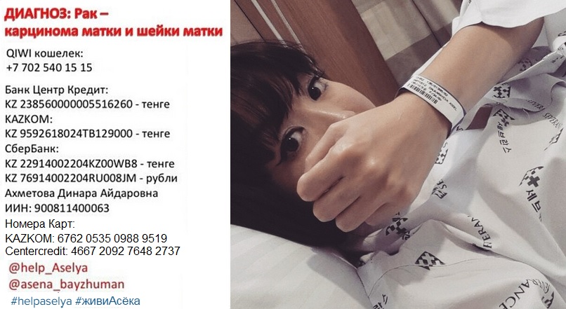 Добавим, что в социальной сети "ВКонтакте" создана группа помощи казахстанской журналистке, а в Instagram имеется специальный аккаунт.  В Сети звезды казахстанской эстрады и кино оставляют свои видеообращения для Асель под хэштегом #help_Aselya. Так, недавно свое обращение разместила казахстанская актриса Асель Сагатова.