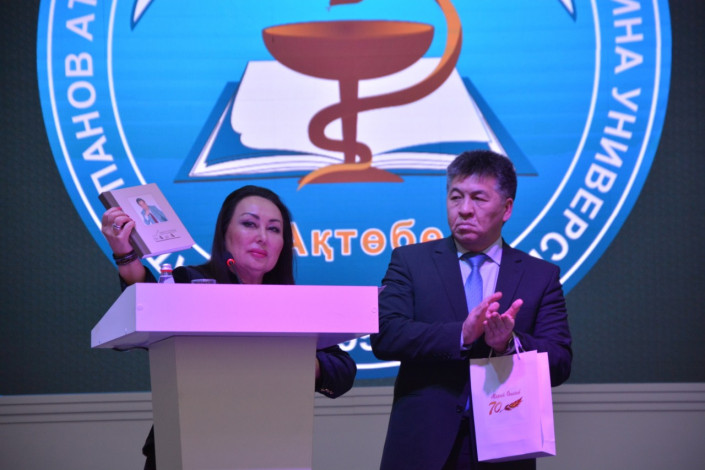 Президент общественного фонда имени Марата Оспанова Бахыт Оспанова поблагодарила акима области Ондасына Уразалина за содействие в организации крупных мероприятий на родной земле и вручила главе региона книгу "Мен сенемін", рассказывающую о жизни и деятельности академика.