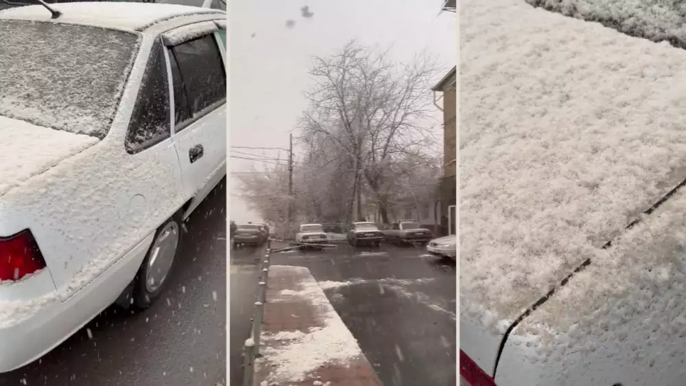 Как сообщили в "Казгидромете", в Сарыагаше действительно выпал снег с нехарактерным для себя цветом.