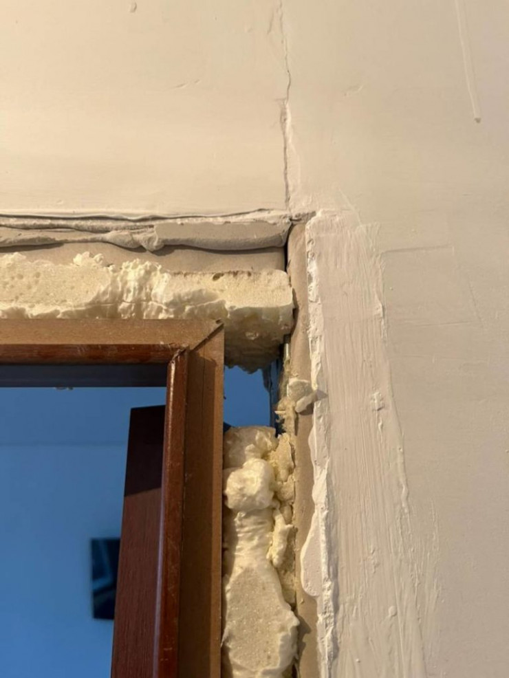 "12 октября я начал заселяться в квартиру. При заезде обнаружил, что верхний замок на входных дверях не работает, да и в целом дверь закрывается тяжело. Стены обшиты ДСП, но уже появились щели, и стяжка кривая, есть трещины. Комнатные двери и розетки держались еле как, после моих жалоб подрядчик эти недоделки все же устранил. В ванной комнате плитка еле держится, а труба для сушки не работает. На кухне я самостоятельно даже не могу открыть окно", - рассказал молодой человек.