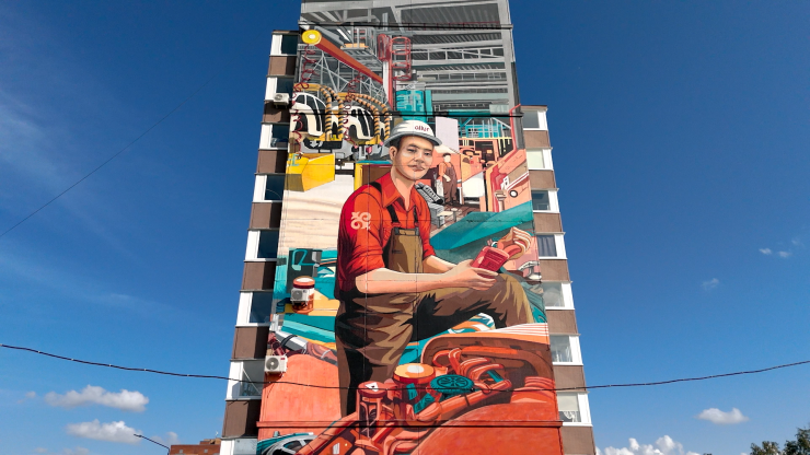 "Хотел сделать мурал, который бы точно отличал Костанай от других городов. Костанай - центр машиностроения, поэтому я решил сделать упор на этом. Очень порадовала реакция местных жителей, так что очень рад, что идея и ее воплощение оценены по достоинству".