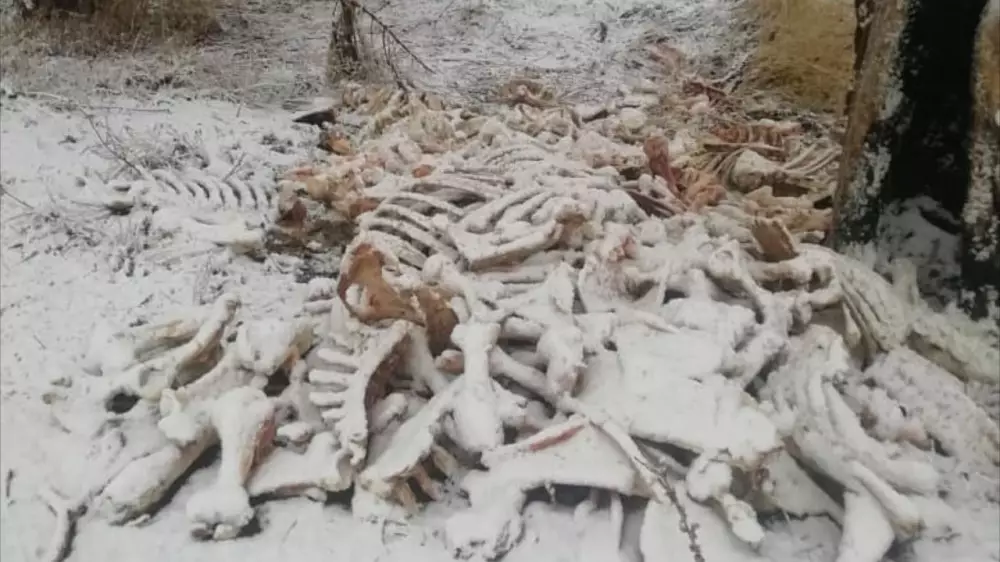 Информация об инциденте и кадры с места происшествия появились в Instagram. Сообщается, что останки животных были разбросаны на дороге возле поселка Көлді. Автор публикации отмечает, что "по всей дороге неизвестные разбросали кучами кости животных".