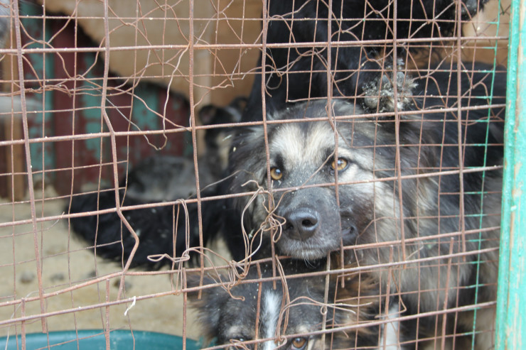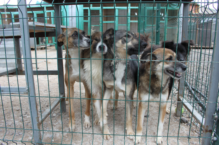 Собаки содержатся на улице - в специальных вольерах. В каждом таком вольере по две-три собаки. Все они также стерилизованы и вакцинированы.