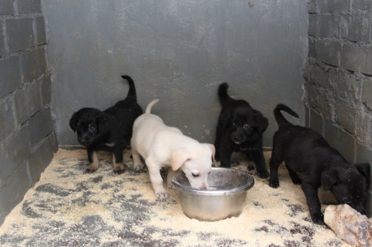 На фото щенята, которые только поступили в приют и содержатся в отдельном вольере
