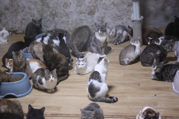 В отдельном помещении в питомнике расположены кошки, которые уже освоились. По пушистым красавцам сразу видно, что уже привыкли к обстановке и вполне ею довольны: они льстятся к пришедшим, а кто-то даже норовит залезть на руки. А еще взгляд более уверенный и сытый.