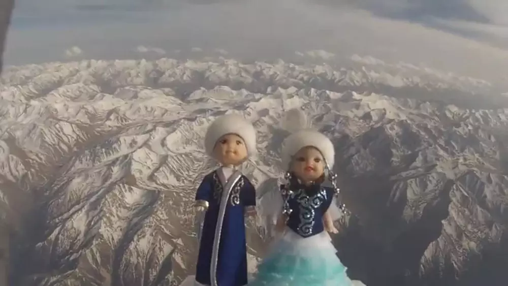 Героев национальной казахской литературы - Козы-Корпеш и Баян-Сулу в виде кукол группа алматинцев отправила в "космос", передает корреспондент Tengrinews.kz. Запуск приурочен к завершению учебного года и проведению торжественных линеек в Казахстане.
