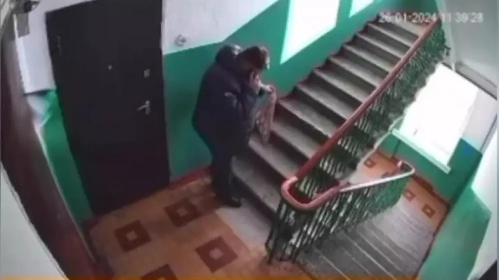 В соцсетях распространяется видеозапись с камеры наблюдения, установленной в одном из подъездов жилого дома. В ролике показано, как некий мужчина, разговаривая по телефону, двигает ногой коврик, лежащий на полу возле квартиры. Поговорив по телефону, мужчина поднимает его, закручивает, а затем кладет под куртку и спускается по лестнице.