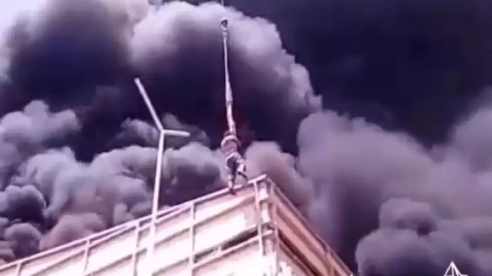 В Алматы на видео сняли процесс спасения мужчины, оказавшегося на крыше горящего здания недостроенной школы, передает Tengrinews.kz.