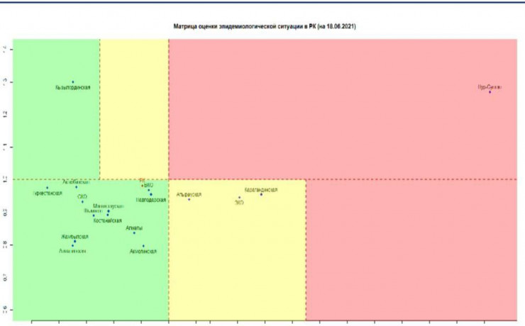 Согласно матрице оценки эпидемиологической ситуации в регионах Казахстана на 18 июня, в "красной" зоне находится Нур-Султан.