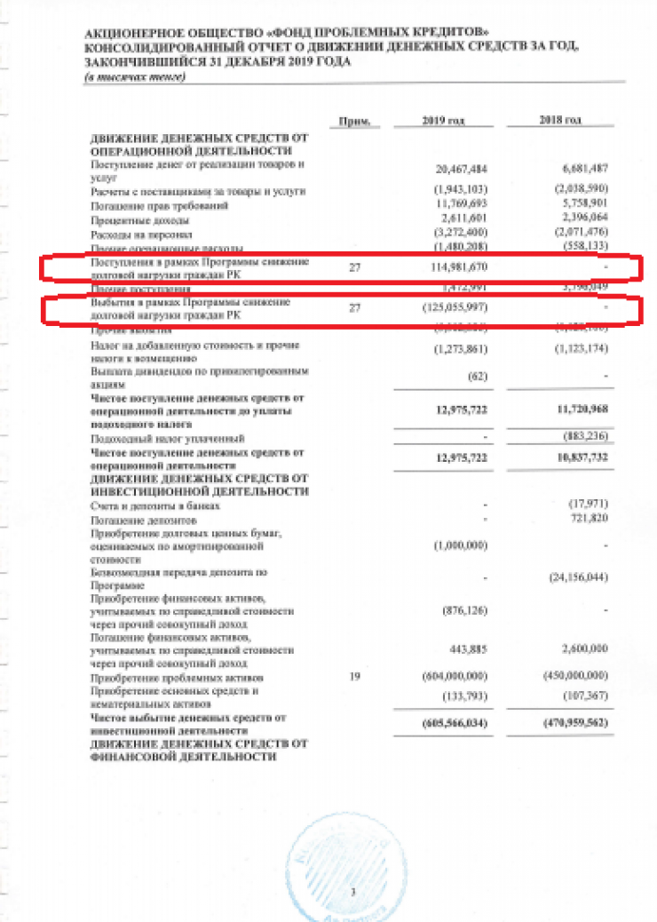 Другими словами, долги были частично погашены или списаны каждому десятому казахстанцу. В 2019 году в рамках "кредитной амнистии" было потрачено свыше 125 миллиардов тенге, следует из аудиторского отчета АО "Фонд проблемных кредитов", который и осуществлял перечисление средств непосредственно в банки второго уровня. При этом "поступления в рамках программы снижения долговой нагрузки граждан РК" составили менее 115 миллиардов тенге, которые, по всей вероятности, пришли из республиканского бюджета. Убыток фонда от реализации программы по снижению уровня долговой нагрузки казахстанцев составил свыше 10 миллиардов тенге, говорится в отдельной финансовой отчетности.