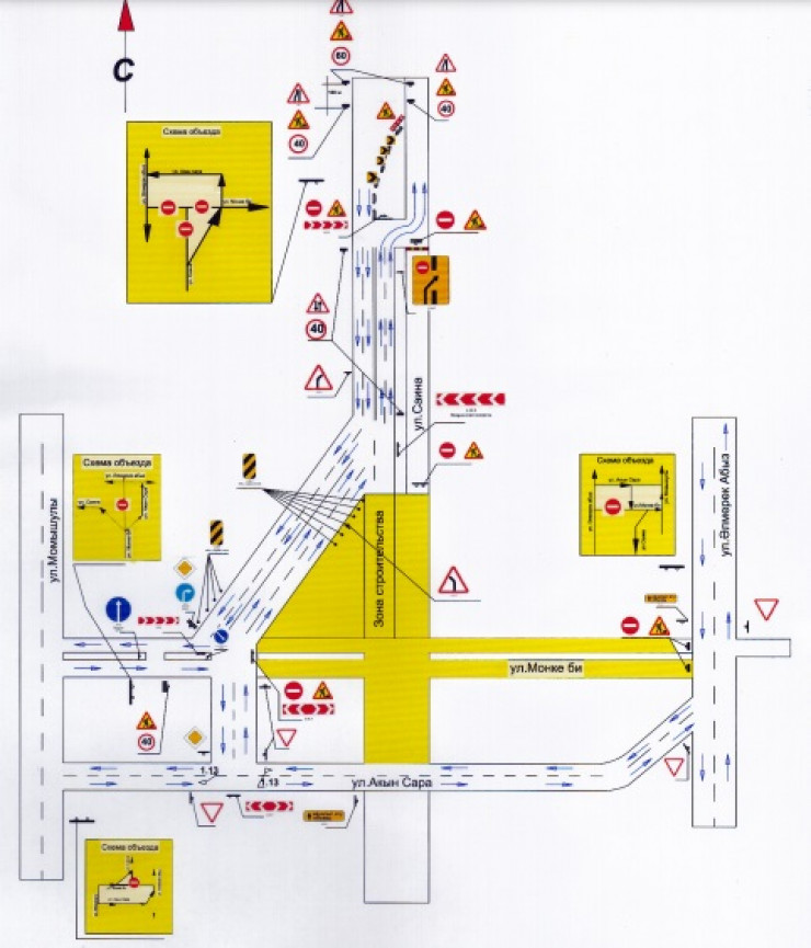 - движение автотранспортов в северном и восточном направлениях будет обеспечено по улицам Акын Сара, Момышулы и объездной дороге;