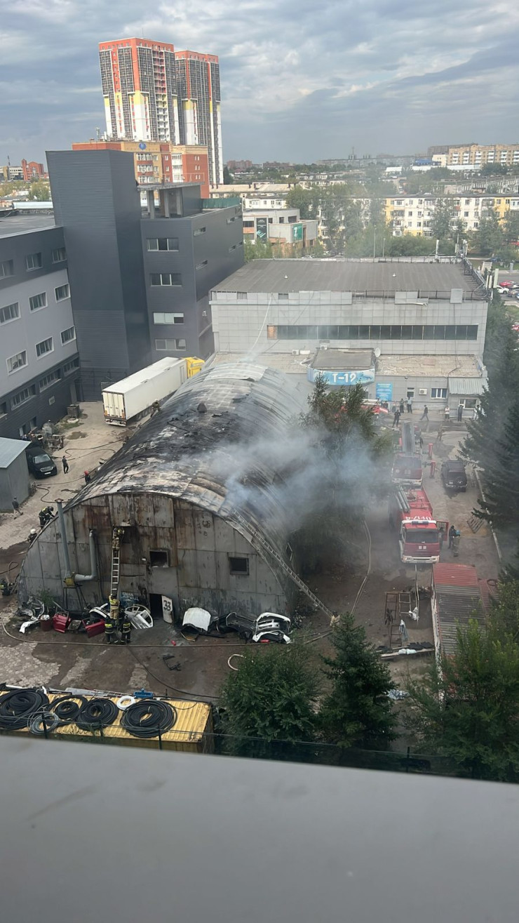 Днем 29 августа астанчане заметили клубы дыма в районе улицы Тауелсиздик. Позднее выяснилось, что горит территория одной из СТО.