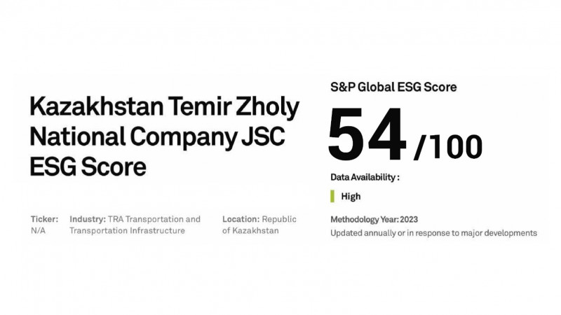 Независимое международное рейтинговое агентство S&P Global присвоило АО "НК "ҚТЖ" ESG-рейтинг на уровне 54 баллов из 100 в Глобальной оценке корпоративной устойчивости (Corporate Sustainability Assessment).