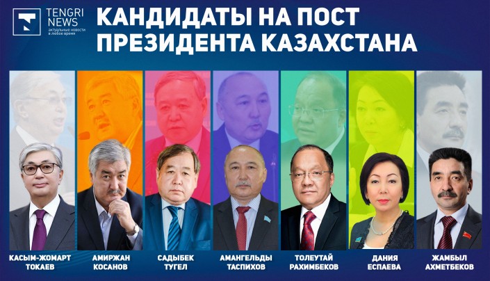 6 мая кандидатами в президенты были официально зарегистрированы Толеутай Рахимбеков от партии "Ауыл", Жамбыл Ахметбеков от Коммунистической Народной партии Казахстана и Амиржан Косанов от национал-патриотического движения "Ұлт тағдыры" (Судьба нации).