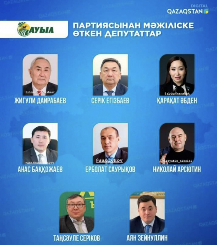 У народно-демократической патриотической партии "Ауыл" 8 депутатских мандатов.