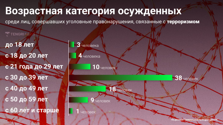 Сколько казахстанцев отбывает срок за экстремизм и терроризм, какова их возрастная категория, есть ли среди них дети и женщины, военнослужащие и лица, выполняющие государственные функции, - в материале Tengrinews.kz.