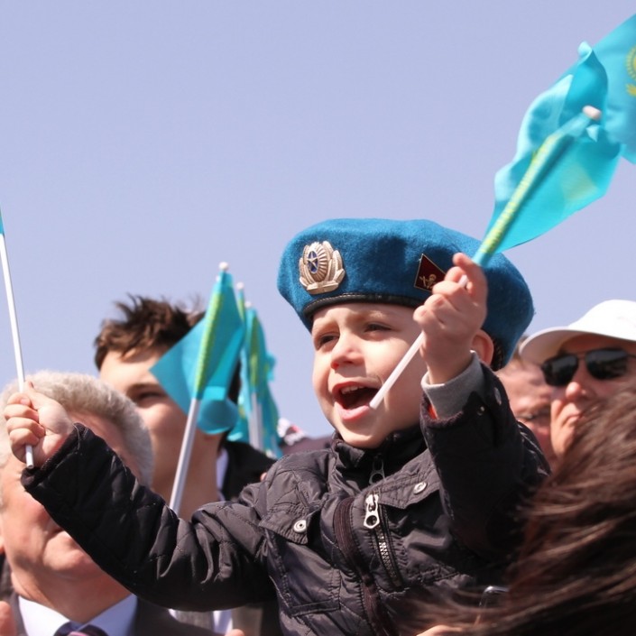 В 12.30 стартует акция "Жаужүрек полк - Бессмертный полк". Маршрут шествия: от площади у Монумента "Қазақ елі" по проспекту Тәуелсіздік до площади Отан қорғаушылар.